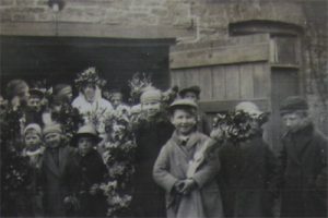 It does seem that Idbury did have a traditional Christmas Mummer’s Play, probably performed by the morris side, but we can find no further traces of it. It is not in Reginald Tiddy’s book The Mummer’s Play. This was published posthumously after Tiddy, who lived in Ascott-under-Wychwood, was killed in WWI, and does contain play texts from Shipton-under-Wychwood, Leafield, Icomb, and Longborough. The Shipton play, which is based on the ballad ‘Robin Hood and the Tanner’, contains the lines ‘Green sleeves and yellow lace four monkeys dance apace.’ It is possible that a more complete text of the Idbury play may still exist in Reginald Tiddy’s papers, but we have not been able to ascertain their whereabouts.